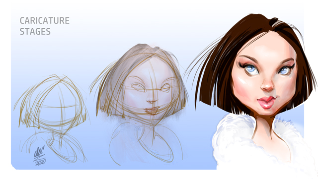 We start with a sketch of the people or subject matter and send you a draft of the caricature illustration for approval and feedback.