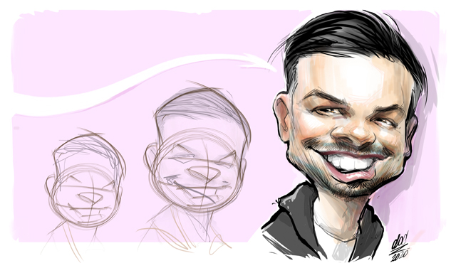 We start with a sketch of the people or subject matter and send you a draft of the caricature illustration for approval and feedback.