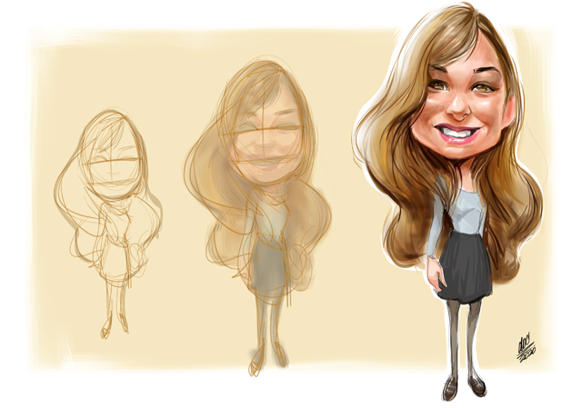 We start with a sketch of the people or subject matter and send you a draft of the caricature illustration for approval and feedback.