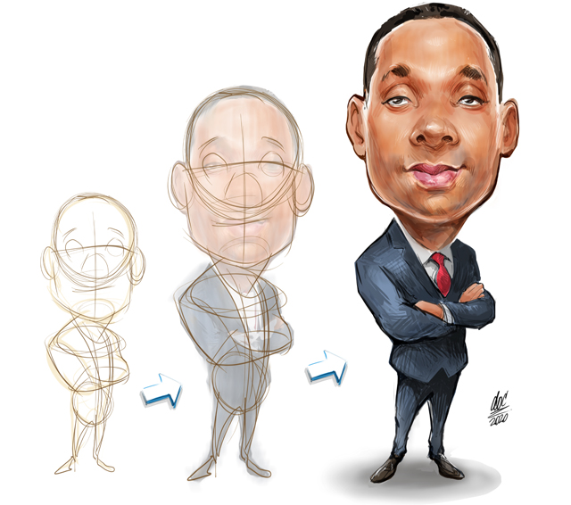 We start with a sketch of the people or subject matter and send you a draft of the caricature illustration for approval and feedback.